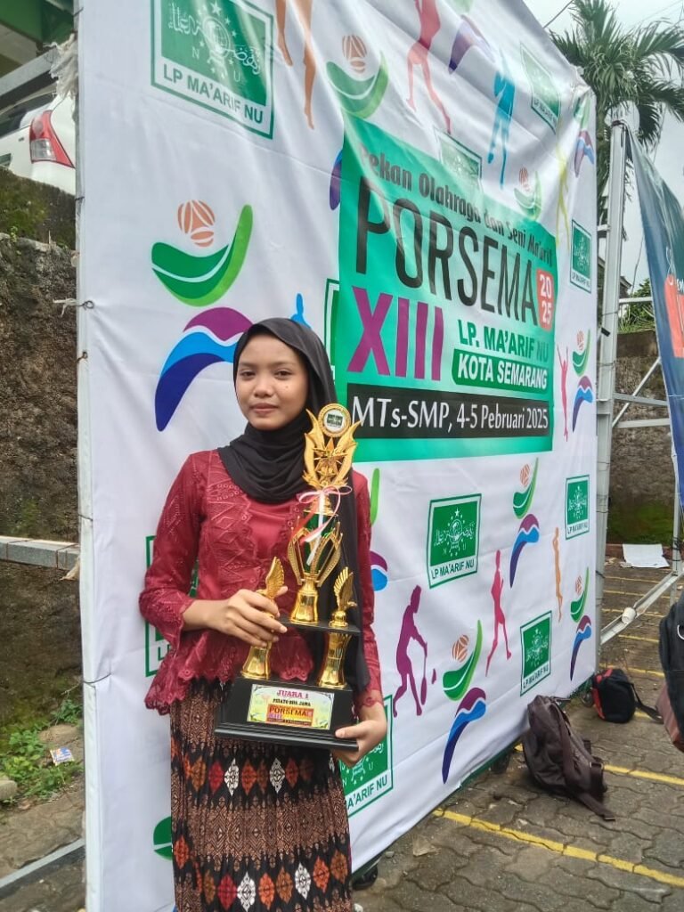 Semarang, 2025 – Prestasi membanggakan kembali ditorehkan oleh siswa berprestasi, Fara Dewi Utari, yang berhasil meraih juara pertama cabang pidato Bahasa Jawa dalam ajang Pekan Olahraga dan Seni Ma’arif (PORSEMA) tingkat Kota Semarang 2025.